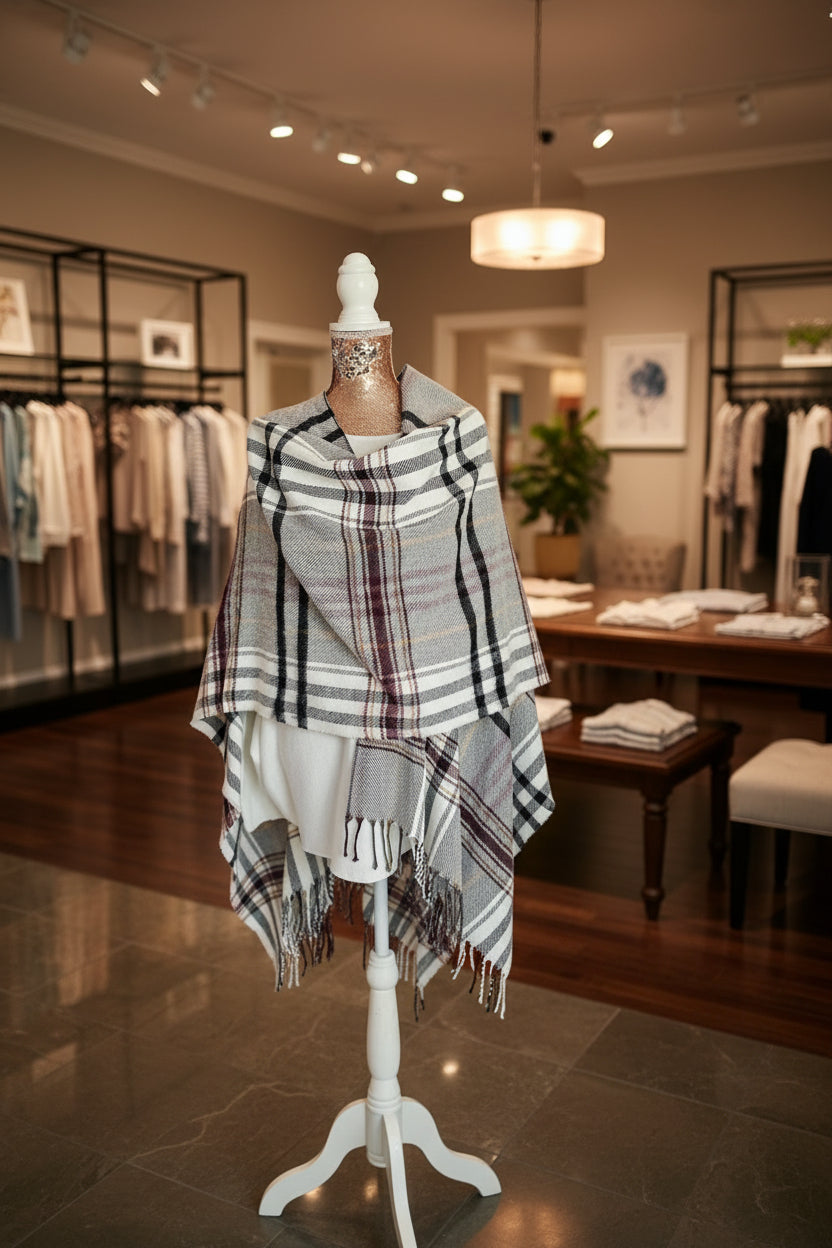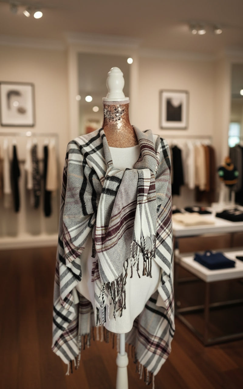Effortlessly elevate your everyday wardrobe with this versatile multicolour  wrap. Layer it over your coat or jumper for an instant boost of warmth and refined style. The beauty of this piece lies in its adaptability—drape, tie, or style it in multiple ways to suit your mood and occasion. A sophisticated accessory that transforms any outfit with understated elegance and practical comfort.