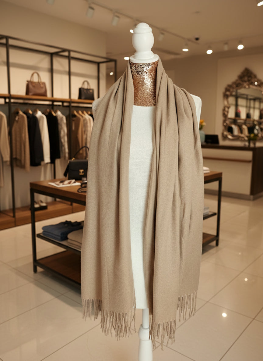 Elevate your winter wardrobe with this luxuriously soft fringed scarf in rich Camel . Crafted from premium polyester, it drapes beautifully and offers exceptional warmth without bulk. The elegant fringe detailing adds refined texture, while its versatile length allows for multiple styling options—wear it draped, wrapped, or tied for effortless sophistication. Machine washable for convenient care, this timeless piece transitions seamlessly from casual to formal occasions, making it an essential accessory for the discerning wardrobe.