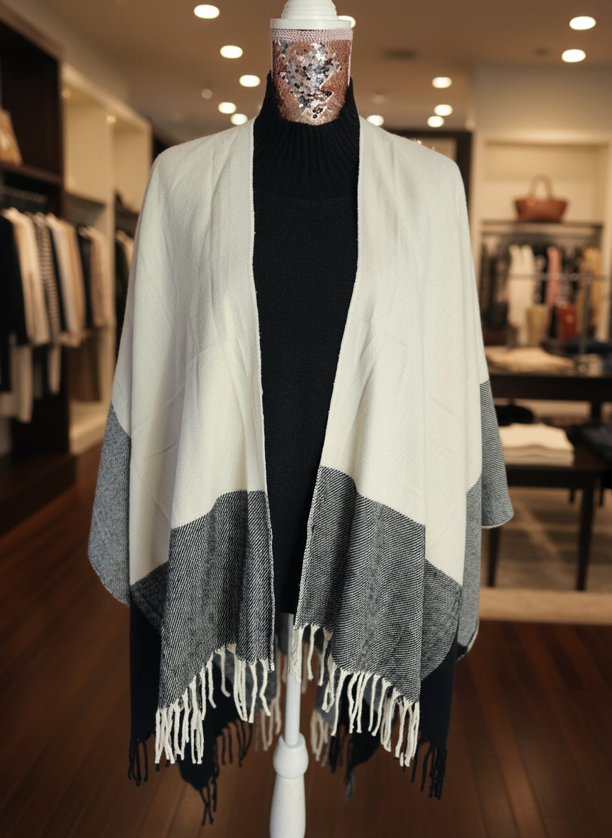 Effortlessly elevate your everyday wardrobe with this versatile beige and black wrap. Layer it over your coat or jumper for an instant boost of warmth and refined style. The beauty of this piece lies in its adaptability—drape, tie, or style it in multiple ways to suit your mood and occasion. A sophisticated accessory that transforms any outfit with understated elegance and practical comfort.